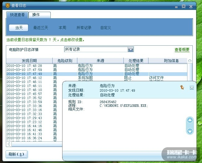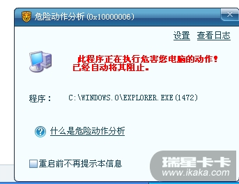 今天瑞星更新后,每次打开360浏览器,都出现木马主动防御