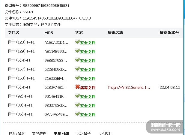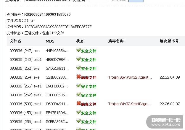 怪了哦 我机子里没有7.rar 21.rar这样的文件 怎么会上报成这2个呢 而且刚才上报第2遍又成第1个结果那样 7 5个文件一个病毒