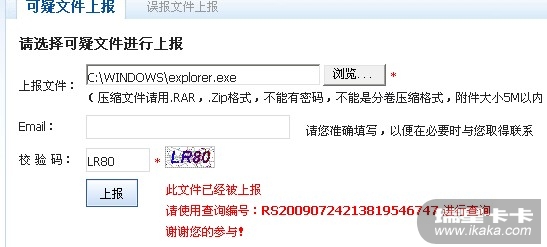 我也郁闷了 昨天确实是复制这个C:\WINDOWS\EXPLORER.EXE上报的 但出来就是上面那2个结果