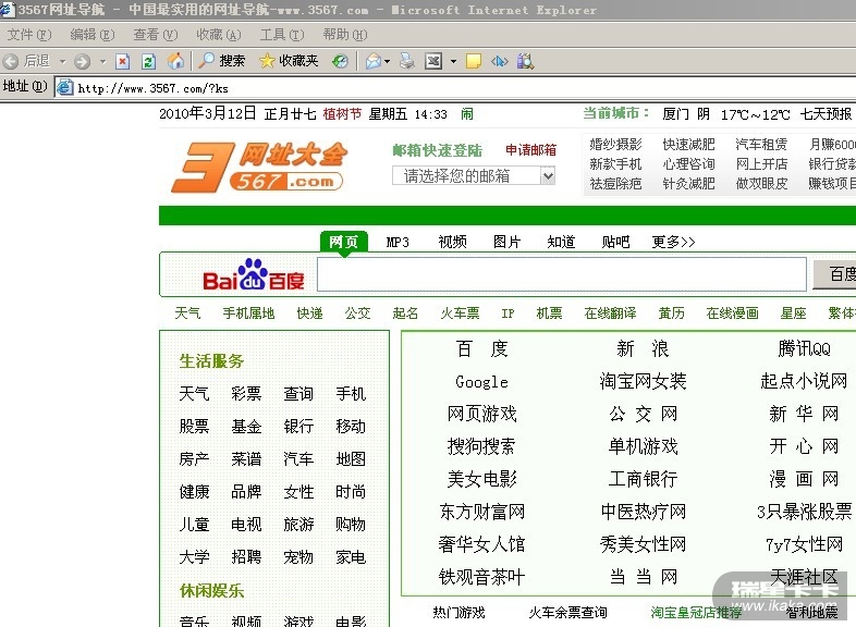 http://www.sina.com.cn,它是可以修改的,用户可以改为自己常用的网址,或是改为“about:blank”,即空白页。这样,你重启IE就可以看到效果了。