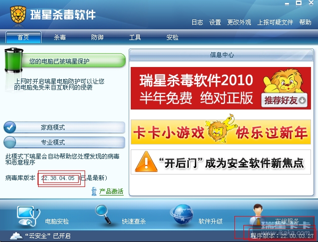 现在是22.38.05.06了吧,楼主修复一下瑞星,看是否可以升级。