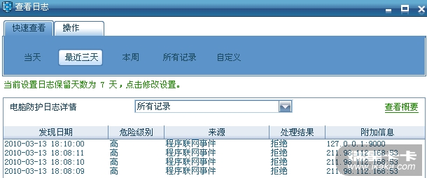 最近,我在防火墙的日志中查看到程序联网事件,台式机上前两天发生过1次,而我在本本上发现昨天有4个程序联网事件(如下图),由于不知道什么是程序联网事件,所以想请教一下:什么是程序联网事件?这类事件的发生是否说明我的电脑在安全方面存在问题,比如有漏洞什么的被攻击了,是这样吗?:kaka2: