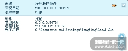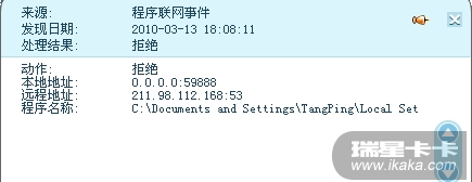 而瑞星报告了有人Ping入,就说明它已经拦截成功,你的电脑没有问题。