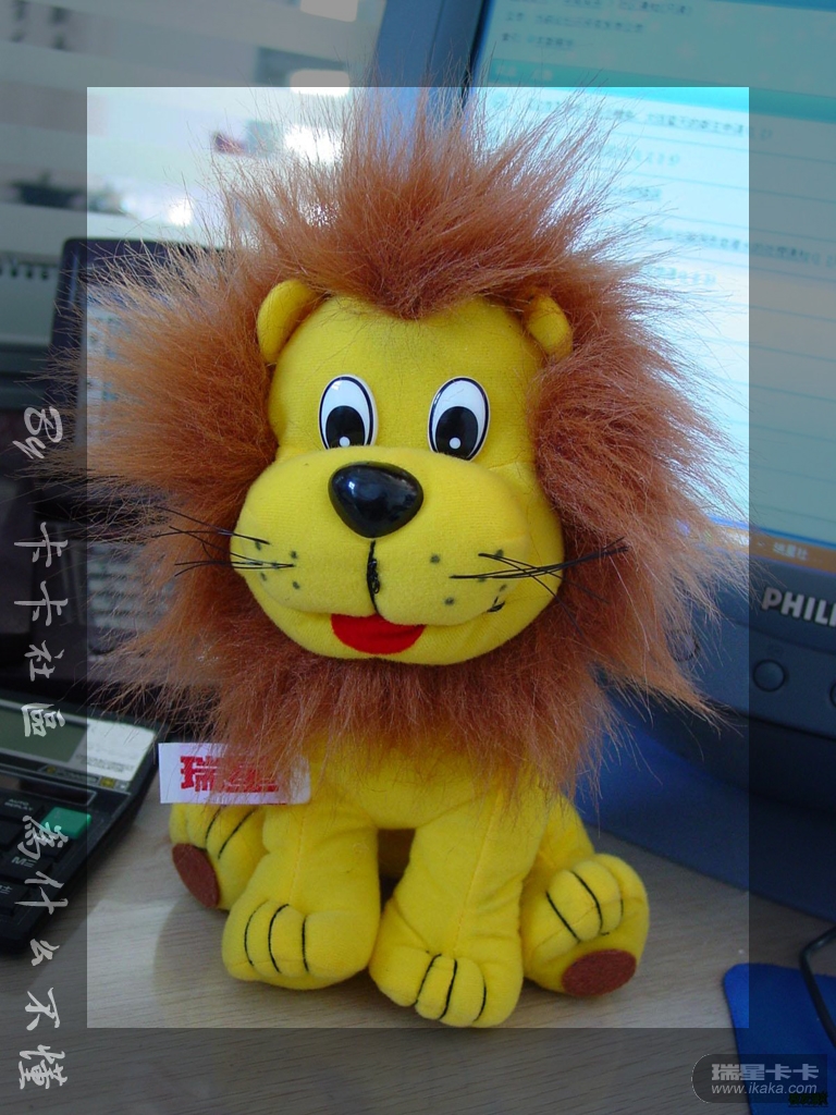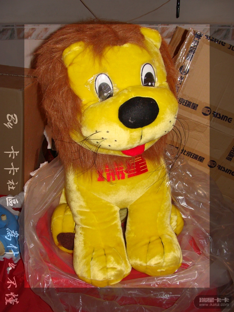 合影的那两只小狮子就算了,最小的那只乱扔,很难看了,大只的先不拆,等我儿子长大一点再拆给他玩,要不又脏了。至于本图的这只,最怀念的,这只是最初收到的,我觉得最好看的一只,可惜被一个同事先斩后奏,拿回家给他孩子玩然后再告诉我,郁闷至极,幸好当初有拍了它的遗像。