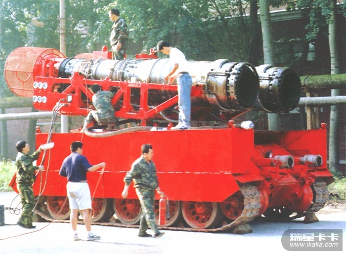 2台航空发动机是泡沫灭火机,利用航空发动机的吹力吹动泡沫对付高层楼房大火的