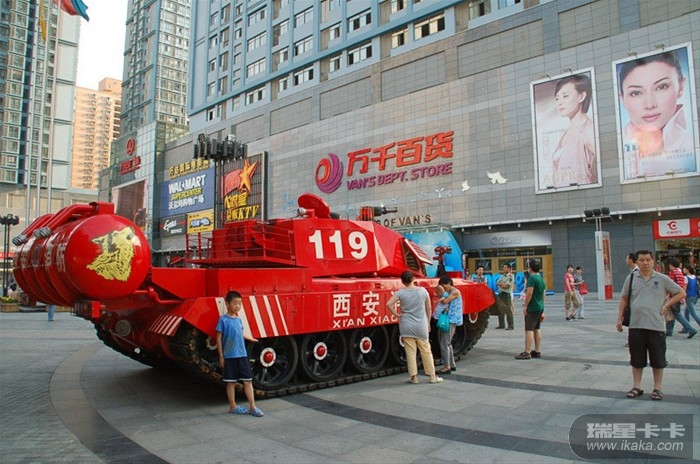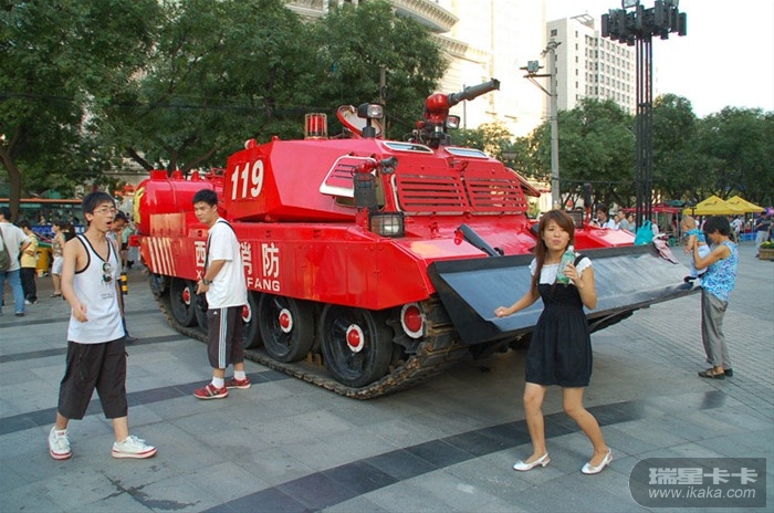 下面的消防坦克是针对低矮楼层火场的冲锋装备