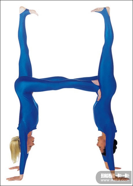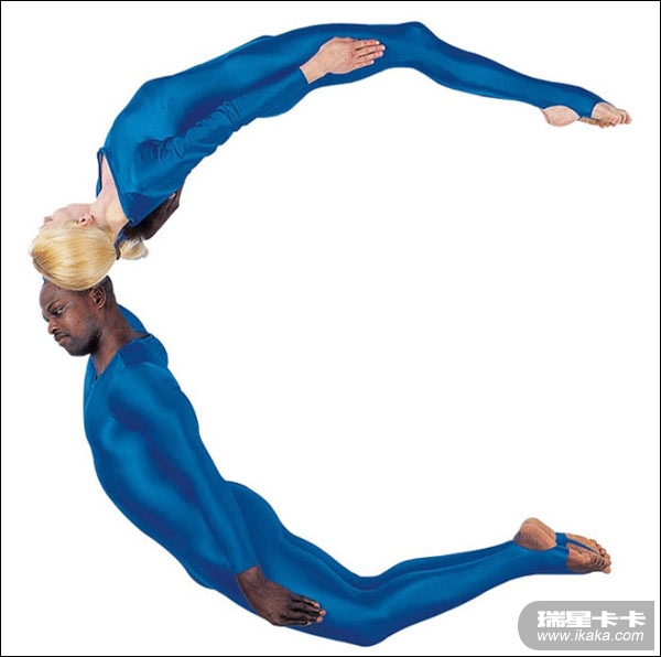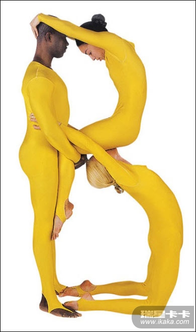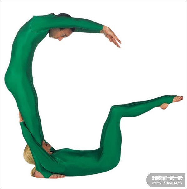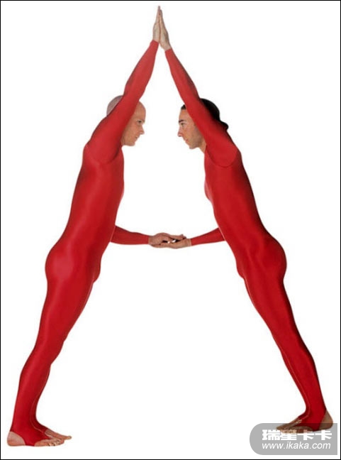 通过改变各种体态与体位设法摆出了人体英文字母表