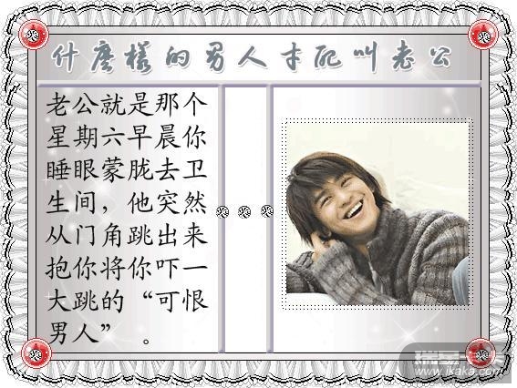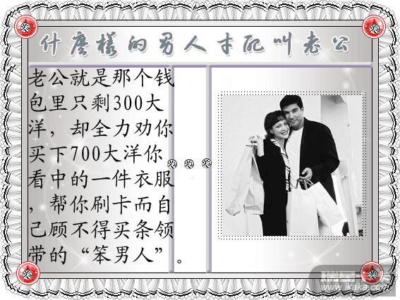 其实我觉得应该相互体贴、相互宽容、相互尊重才好。如果任一方凌驾于对方之上,这样的夫妻关系是不正常的,也难持久!