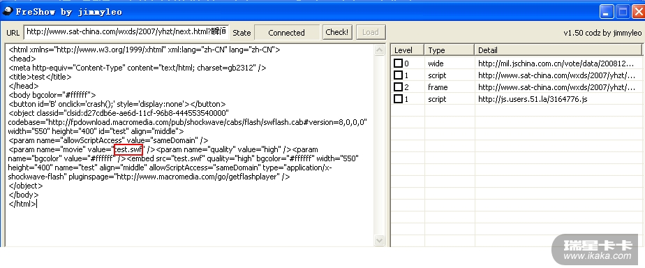 按照以往的解密经验,我们都是将swf文件直接下载后,再使用工具进行解密。而这次这个swf网马使用传统的工具redoce、SWFDecompiler等无法解密出。在这里提供一个另类的解密技巧来解密这个swf文件。此方法由小聪大牛提供。将swf页面的源代码稍作修改,这里还是用到了textarea标签,通过运行修改过的页面后,通过加载这个swf文件后,将swf里的代码通过textarea文本框区域输出,从而达到获取swf内代码,完成最终的解密。下面来详细看一下具体步骤: