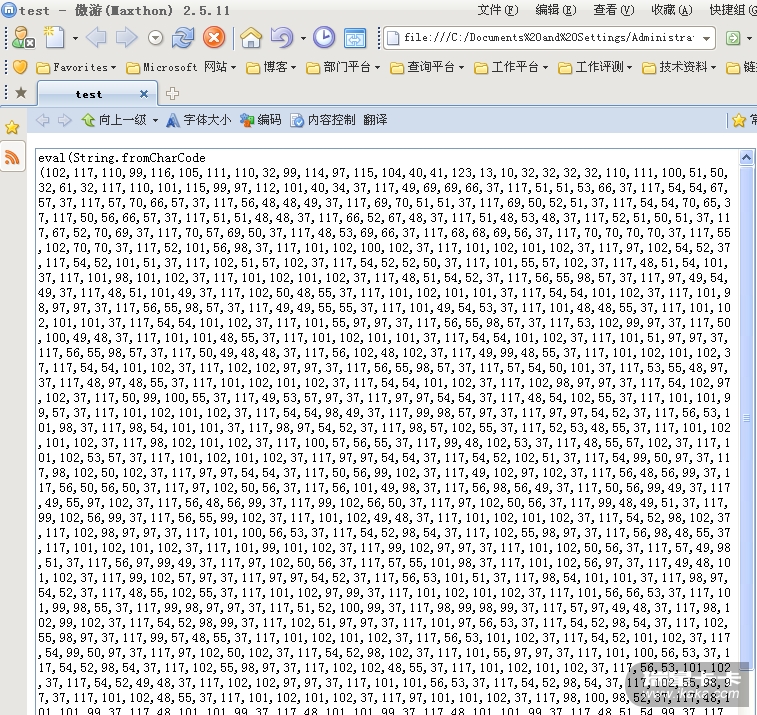 源代码和修改后的代码就不贴出来,大家可以下载附件,其中next.html是源代码内容,abc.html为修改后的代码。注意:abc.html在遨游版本为:2..5.11成功获取到代码,经测试ie6.0及ie7.0都未能成功。成功获取到代码详见下图: