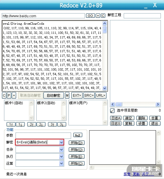 获取到的代码中有个eval,使用redoce工具的eval清除来进行解密,或者直接使用在线解密工具的十进制进行解密也行。