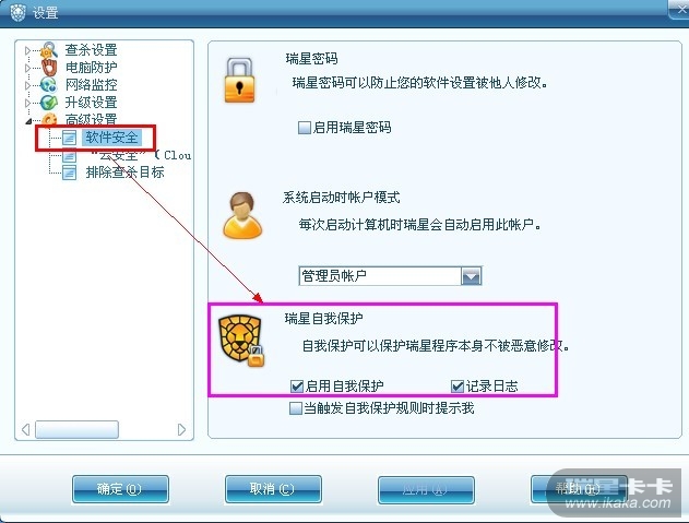 是不是瑞星的启用自我保护被关闭了。