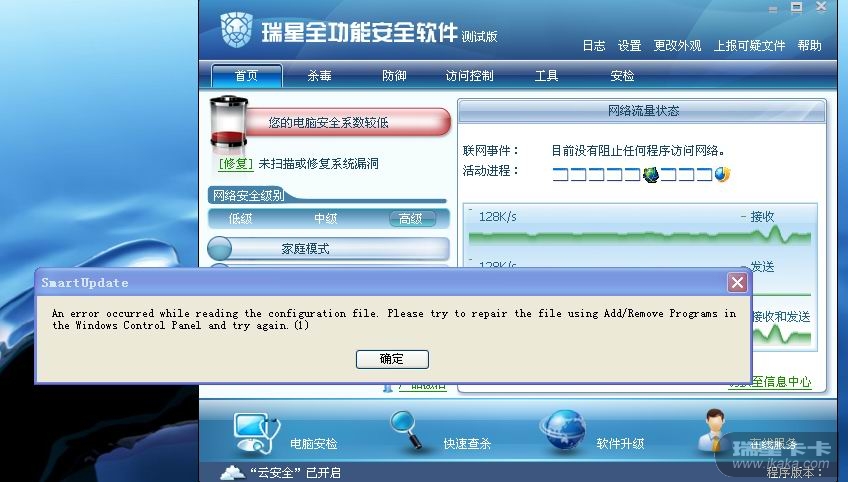 图片显示的是配置文件损坏了,楼主安装的是测试版,可以卸载直接安装免费版