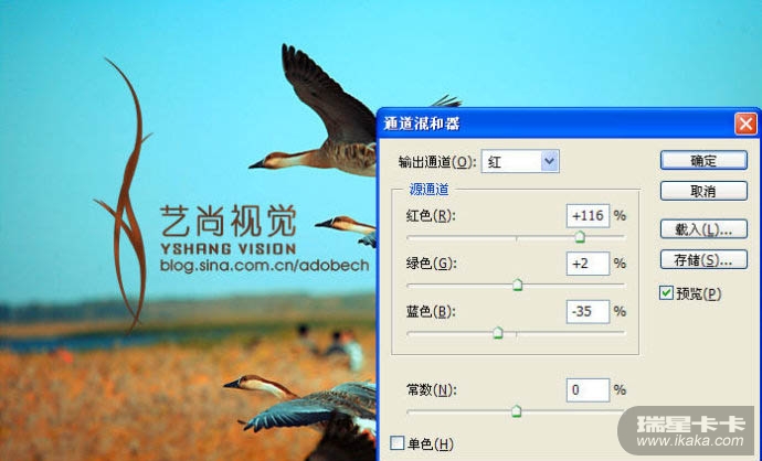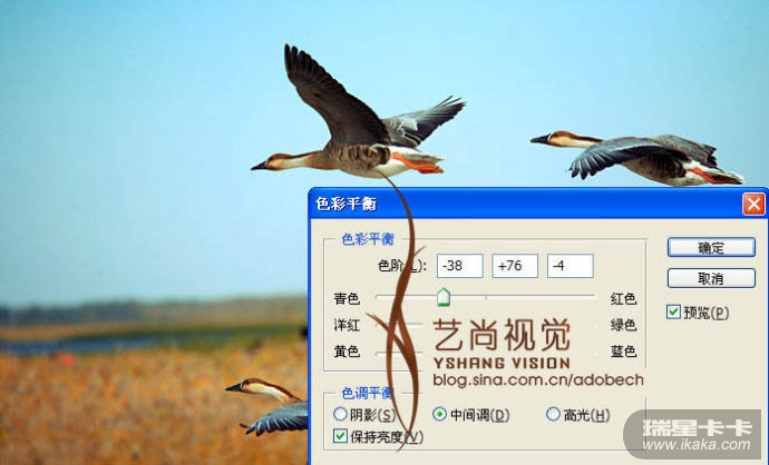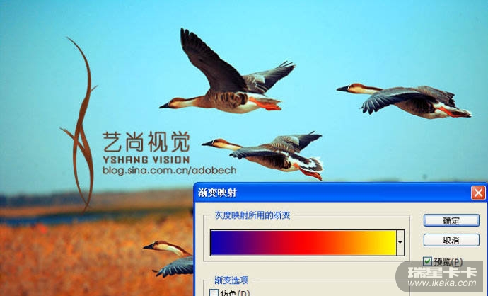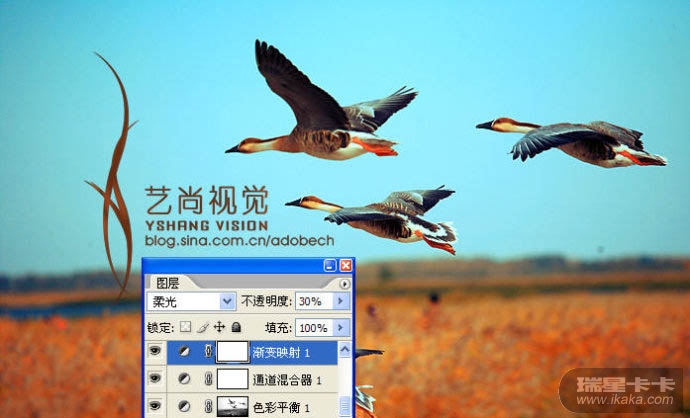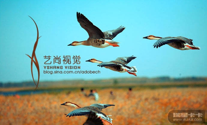 卡卡PS大课堂——第37课——打造漂亮的青红色大雁起飞图