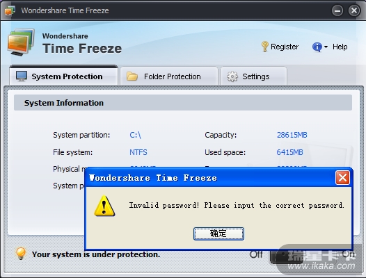 1、Wondershare Time Freeze的“系统分区保护”状态。
