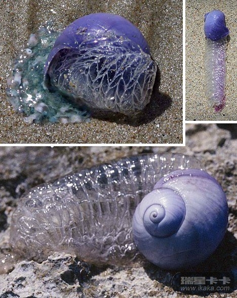 1. 紫色海蜗牛,紫色海蜗牛是一种神奇的腹足动物。这种贝类动物的壳又薄又轻,一般为紫色、白色和淡蓝色,陀螺形。触角分叉,眼几近退化。这种动物的足部能够分泌出粘液而形成浮囊,它就是借助浮囊过着与众不同的即逍遥自在又充满风险的浮游生活。