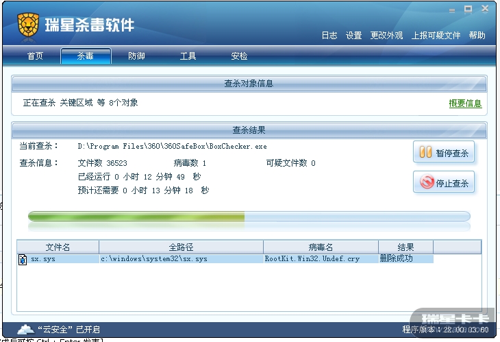 仔细看了下,原来rootkit.win32.undef.cry,为反外挂驱动,瑞星把他当做病毒了