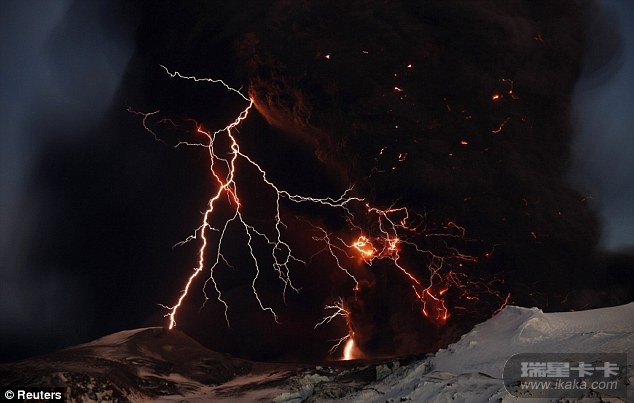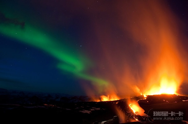 就在冰岛艾雅法拉(Eyjafjallajokull)火山第二次喷发前几天,从火山口的两道裂缝中流出炙热的岩浆。