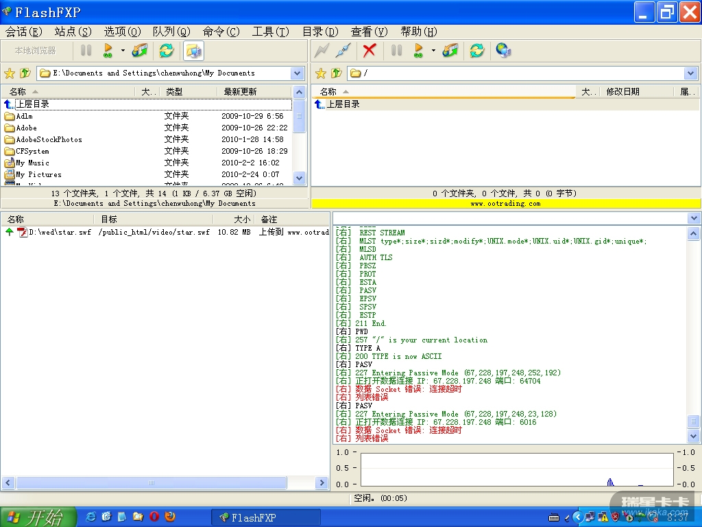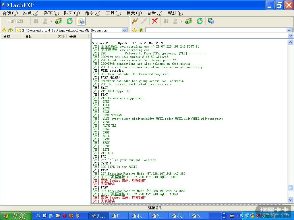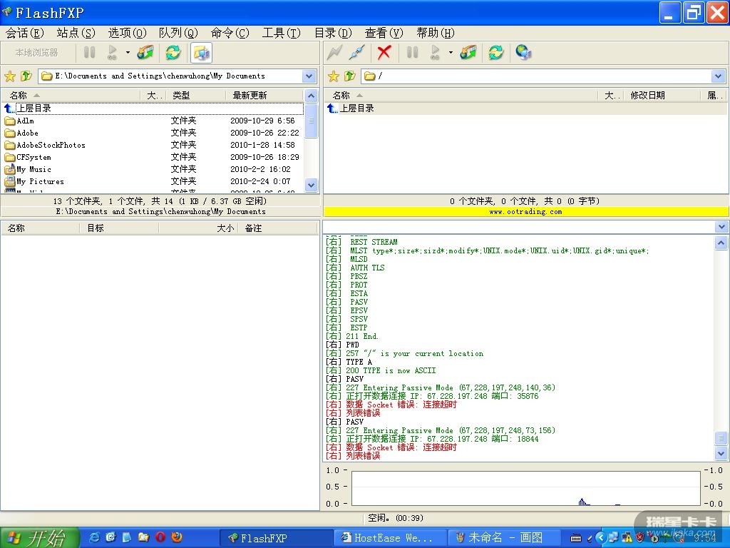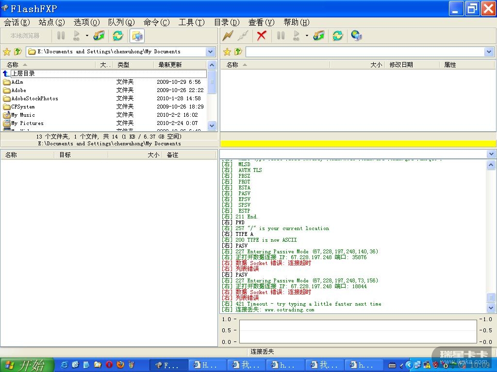 我的FLASHFTP原来好好用的,由于做了一个什么webdisk,美国虚拟主机那边要打开什么防火墙端口中,现在出现了这种情况,不知道是什么原因,请大家帮看一下,到达是什么原因,美国方面他们说能用CUTEFTP上传,我是用FLASHFTP上传,不知道到底是什么一回事。他们一个劲要change the mode,到底FTP有多少个mode?越搞越乱,不知是什么一会事?
