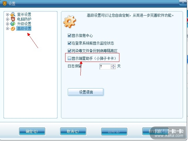 详细设置-高级设置-勾选“显示瑞星助手”即可