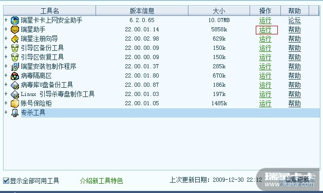 谢谢阿...但我看了下,软件的工具里没有瑞星助手这一行....我用的是Win7,有关系么?