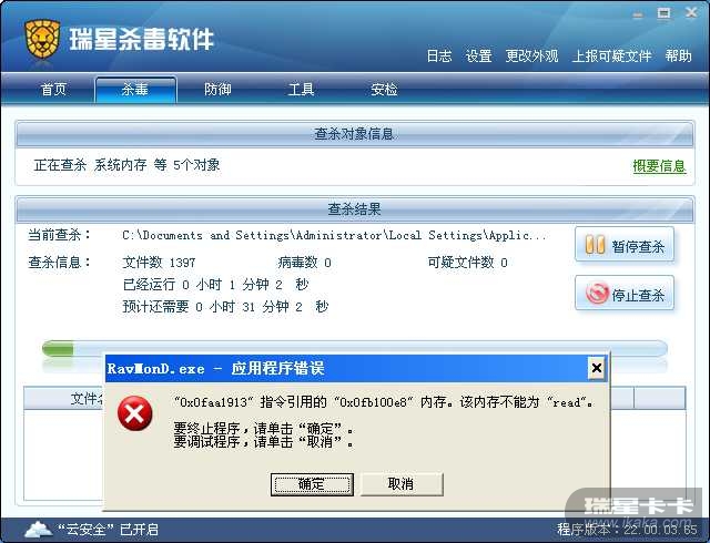 最近总是出出RavMonD.exe应用程序错误,修复软件也不行。