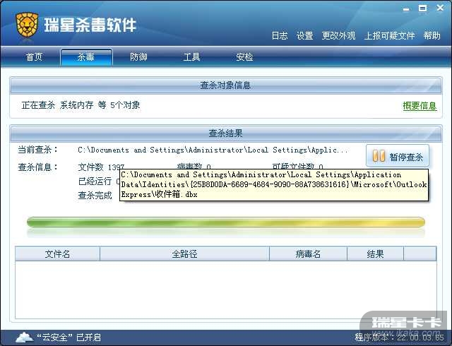 出现问题主要是在空闲时间杀毒,全盘或部分盘杀毒。这时默许选择了系统内存对象。