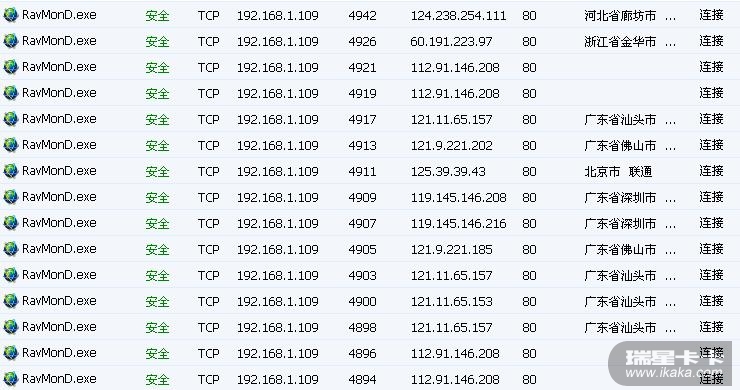 那些不是瑞星软件的流量,ravmond是瑞星的监控程序,凡是受瑞星监控的程序都有显示,图片显示的相关软件的流量。你计算机中软件的流量统计。