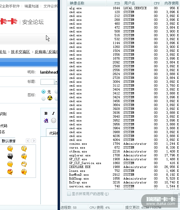 我的监控可以打开可以正常升级,查杀无毒!再看进程若干cmd.exe ,