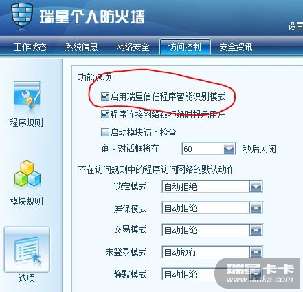 楼主看下设置是否启用了智能识别,没有托盘修复软件试试(开始-所有程序-瑞星-修复软件)不勾选“保留配置文件”
