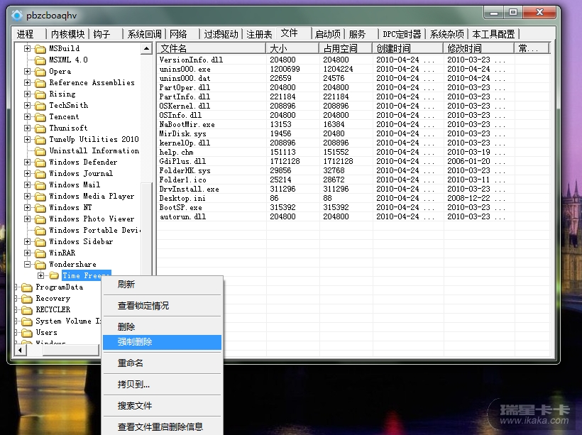三、用XueTr暴力结束 Wondershare Time Freeze进程并 删除Wondershare Time Freeze的程序及其驱动: