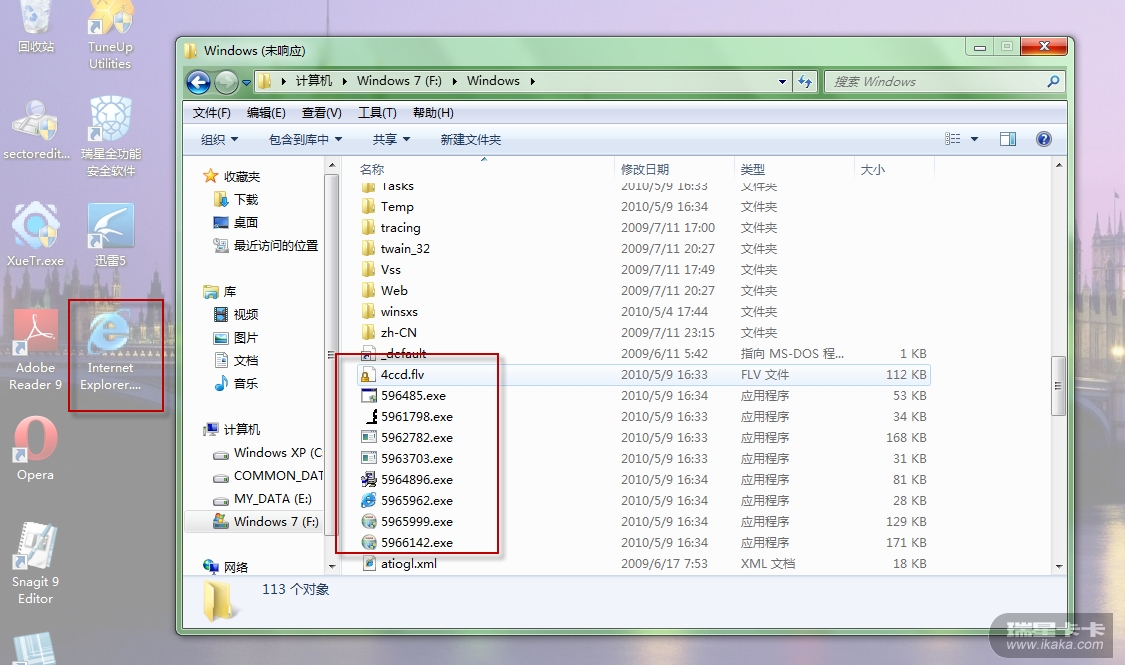 作为对比,同样预先关闭其它安全软件,只打开RIS2010的所有防护,然后用XueTr暴力删除RavmonD.exe及瑞星的系统托盘。重启。重启后,RIS2010废了。