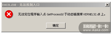 GetProcessId这个函数是xpsp1以后才有的,估计是某个软件注入了excel,但是那个软件直接调用了这个GetProcessId,导致这个地址无法被取到,解决方法只能找到你最近安装的软件。。看看哪个软件的bug,或者升级系统:kaka12: