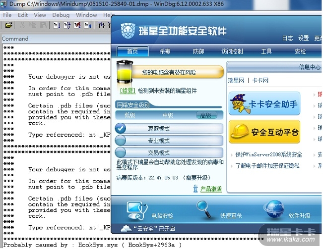 dmp文件(见最下边附件)及瑞星版本截图如下: