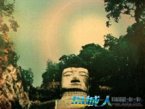 2002年5月7日上午9时43分,乐山大佛再现难得一见的“神秘光环”———佛光。乌云还未褪去的乐山大佛上空,突然出现日晕现象,刚刚升起的太阳四周闪现出一个直径约300米、内红外紫的五彩光环,色彩时明时暗。千年难遇万人争睹
