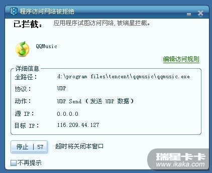 2 在“访问控制”--程序规则中您说的“qq音乐”是否勾选并为拒绝。请设置为允许