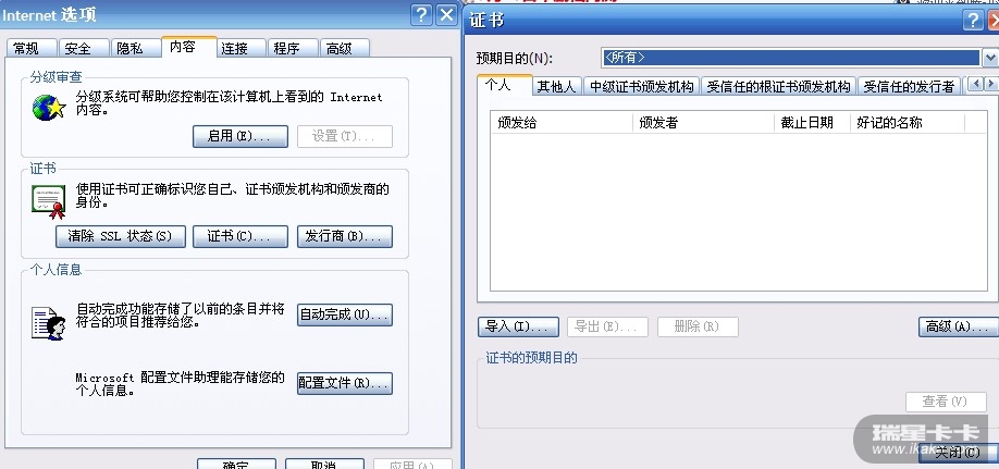没有啊,瑞星杀毒+防火墙卸除后再重新安装就行了。但只要一安装瑞星,证书就没了