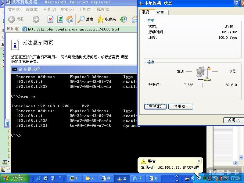 两天被ARP欺骗不断的攻击,瑞星RFW一直报警,就上不了网了,