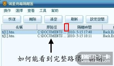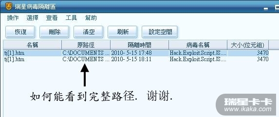 如何能看到瑞星病毒隔离完整路径. 谢谢.