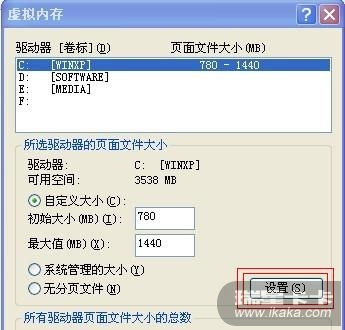 而我的内存是1G,经常发现物理内存空闲很大,但是虚拟内存占用比较大的情况,所以,今天大胆的设置了一下虚拟内存,将虚拟内存设置为了:780M-1440M(差不多少了一半左右)。经过对比,发现系统运行速度至少提升了15%左右。现在将虚拟内存设置步骤贴出来: