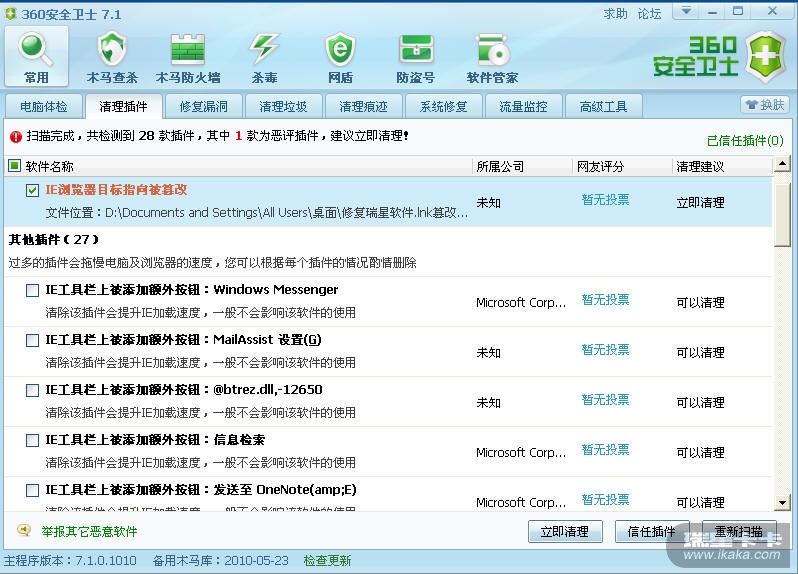 -----修复瑞星软件被360评为恶意插件 (感到这样的恶性竞争得意者是谁,是诺顿还是迈咖啡在偷着笑...)