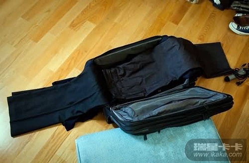 1.普通叠衣法太占空间,Poole首先将衣裤紧紧卷成轴