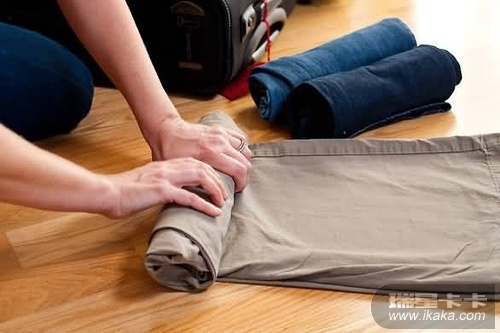 1.普通叠衣法太占空间,Poole首先将衣裤紧紧卷成轴