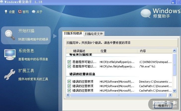 但有大把问题呢。。。。替换重启后刚开始还是没用,症状如中毒前一样:鼠标右键点击后选项马上就消失,我只有运行windos修复助手1.18后