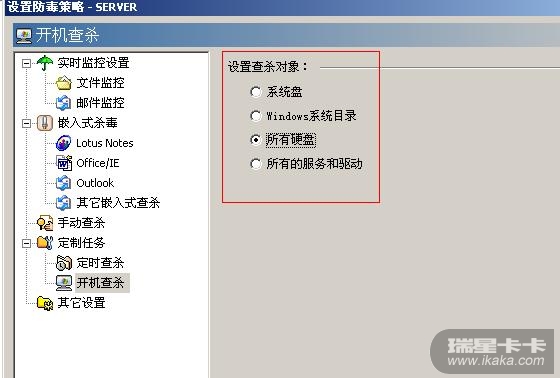 瑞星网络版开机扫描 在系统中心设置了不开启 但是开机后还是出现开机扫描对话框。