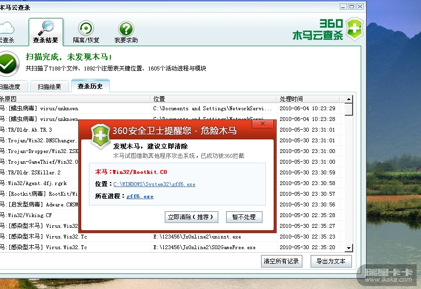 日志未见异常,杀毒软件查杀的路径及文件名是什么?lz可以发个截图来看一下。