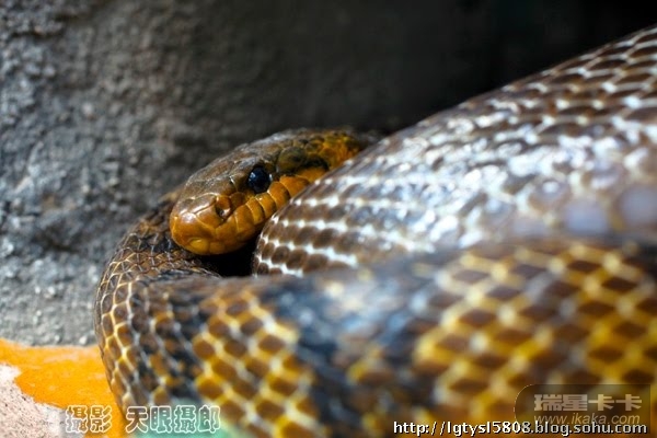 几天进入十三陵永陵拍照,这里为了保护文物始终没有对外开放,我是凭着很硬的关系才得门而入。进入陵区,里边一片荒凉景象,除了门口小屋内2个守陵的老人,空无一人。当我与爱人沿着石板阶梯向宝顶明楼行进途中,突然发现在宝顶的排水洞内盘伏着一条金黄的“蟒蛇”,蛇身有小孩胳膊粗,眼睛睁着微微眨动。我爱人吓坏了,她很怕蛇,我说这是神物不会轻易伤人,他在我的鼓励下才颤颤惊惊走到近前,拍下这难得的镜头,我也用50微距头走到跟前拍了特写。永陵是明世宗嘉靖皇帝朱厚熜之陵,皇帝又被称之为真龙天子,蛇俗称小龙,皇陵中盘伏着的蛇,似乎预示着皇帝的子孙在此守陵,真是神奇。出来后与守陵的大爷攀谈,他说由于这里没人进来,所以蛇、野兔‘刺猬’松鼠等经常出没。我们拍下来的蛇叫做“黄松”(音),属于毒蛇类。此次进入皇陵收获真大。