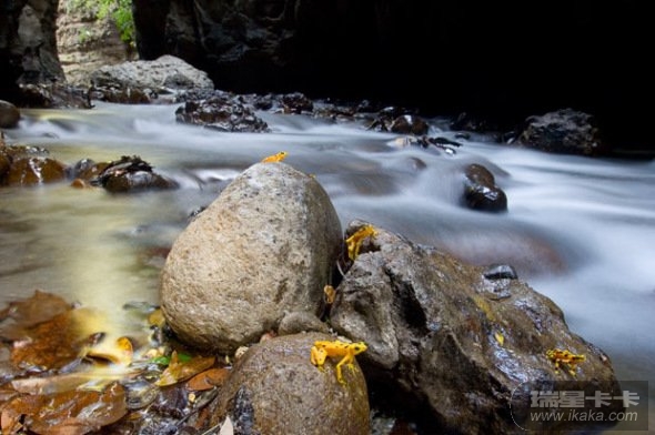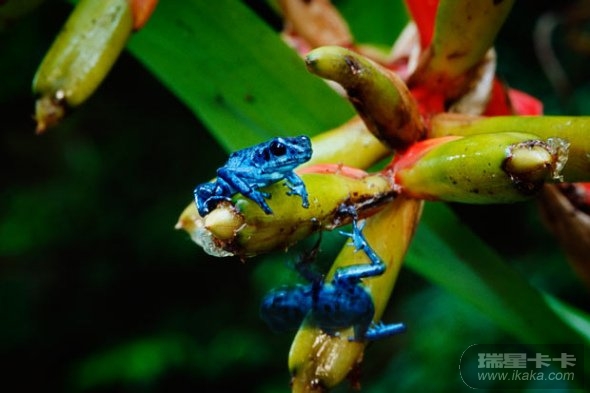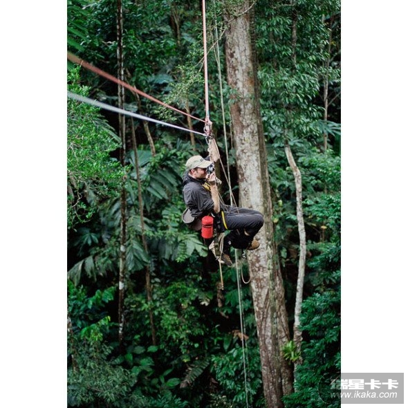 据国外媒体报道,对于电影《人猿泰山》中主人公泰山的丛林生活,许多观众至今记忆深刻。近期,比利时生态学家和摄影师吉多-斯特肯德里斯为了寻找和拍摄巴西和巴拿马雨林中的珍稀野生物种,也过上了泰山式的丛林生活。斯特肯德里斯每次花两周时间生活于雨林之中,他在雨林深处的树顶之上搭建了一座简易住居,常常在高耸的雨林树梢上来回摆荡,拍下了一组世界珍稀物种的珍贵照片。从简易帐篷中,斯特肯德里斯拍到了一些此前从未见过的物种,比如本图中的蓝色树栖毒箭蛙。