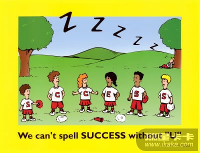 少了你我们无法成功。少了“U”,我们就不能拼写“SUCCESS”。
