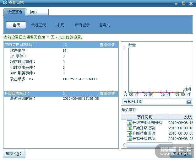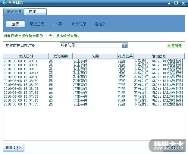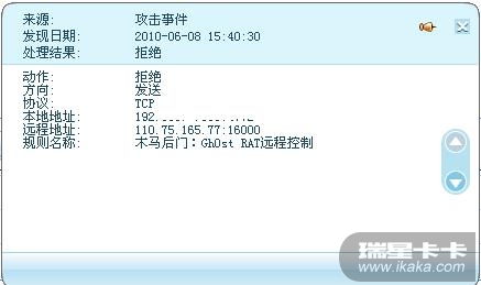 瑞星开始提示,有人攻击,瞬间攻击了12次,我查看了日志